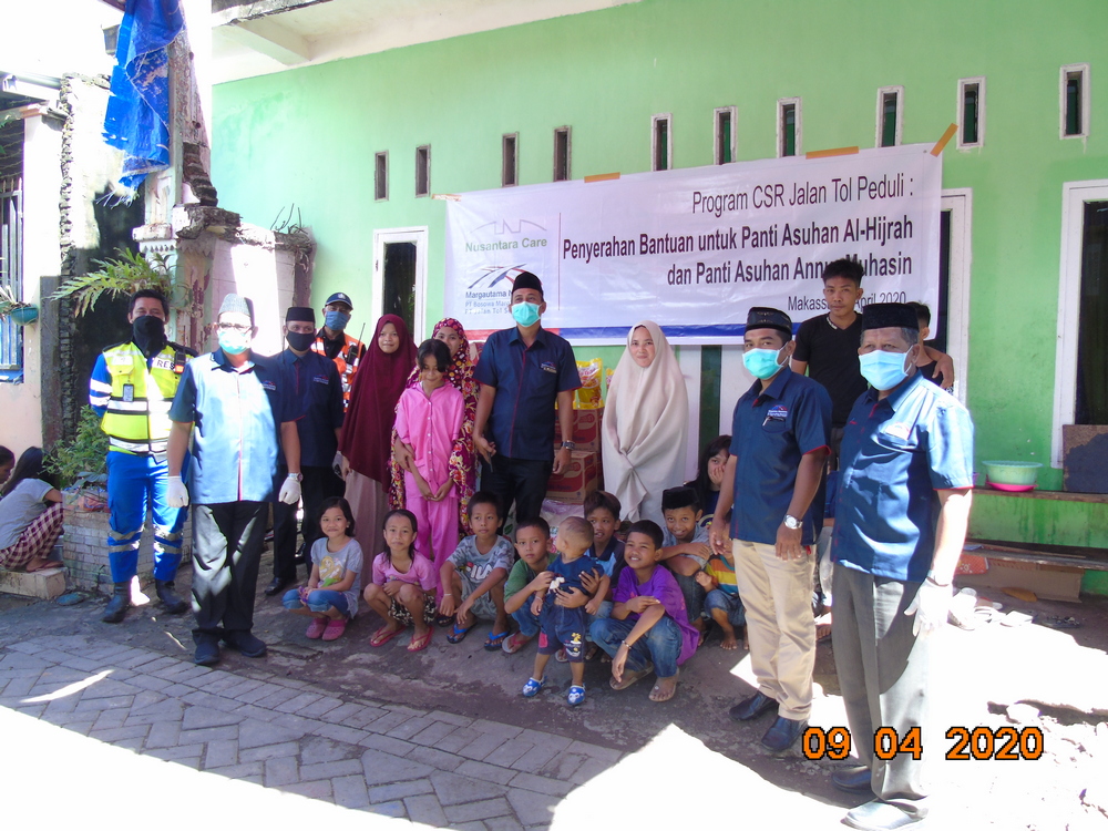In order to support the fulfillment of people's daily needs in the midst of the Covid-19 pandemic, Makassar Toll Management has distributed assistance in the form of distributing basic necessities. The parties to which this aid is distributed are two orphanages located around the operational area, namely the Al-Hijrah and Annur Muhasin orphanages. The donation was given on April 9, 2020 in the form of basic necessities packages.
