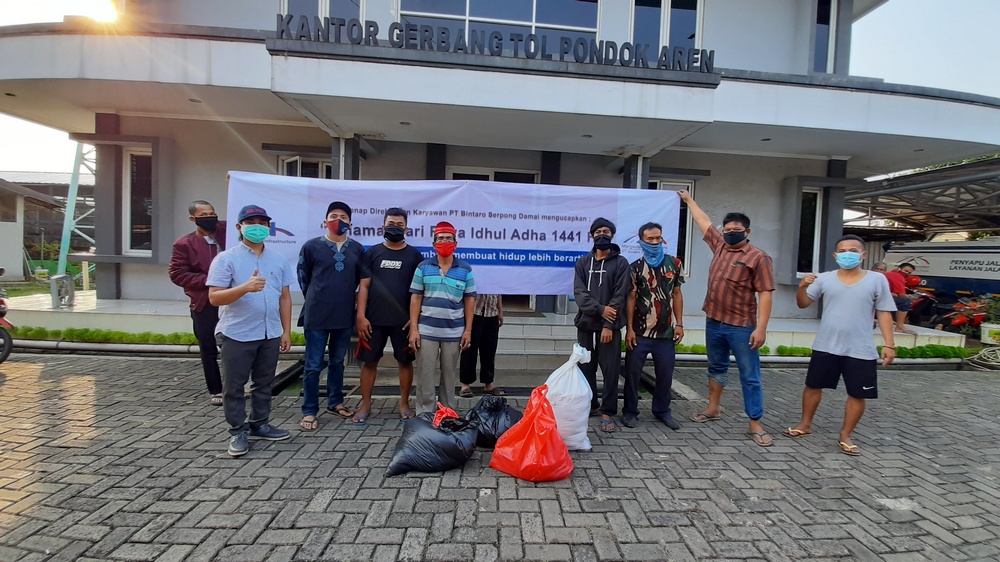 The Management of PT BSD, the business unit of PT Nusantara Infrastructure in the Toll Road Sector, shared happiness with 300 residents through the distribution of beef around the operational area on July 31, 2020. This activity coincided with Eid al-Adha 10 Zulhijah 1441 Hijriah at the Pondok Aren Toll Gate Office, South Tangerang. The meat was given to the representatives of RT 003 and RW 004 to be distributed to all communities around the Company’s operational areas.